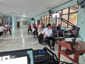 Meskipun narasumber berhalangan hadir secara langsung, pemaparan materi tetap berjalan lancar melalui platform Zoom Meeting, yang difasilitasi oleh Wakil Kepala Sekolah Bidang Humas, Bapak Rudi Hartono, S.ST selaku host kegiatan.